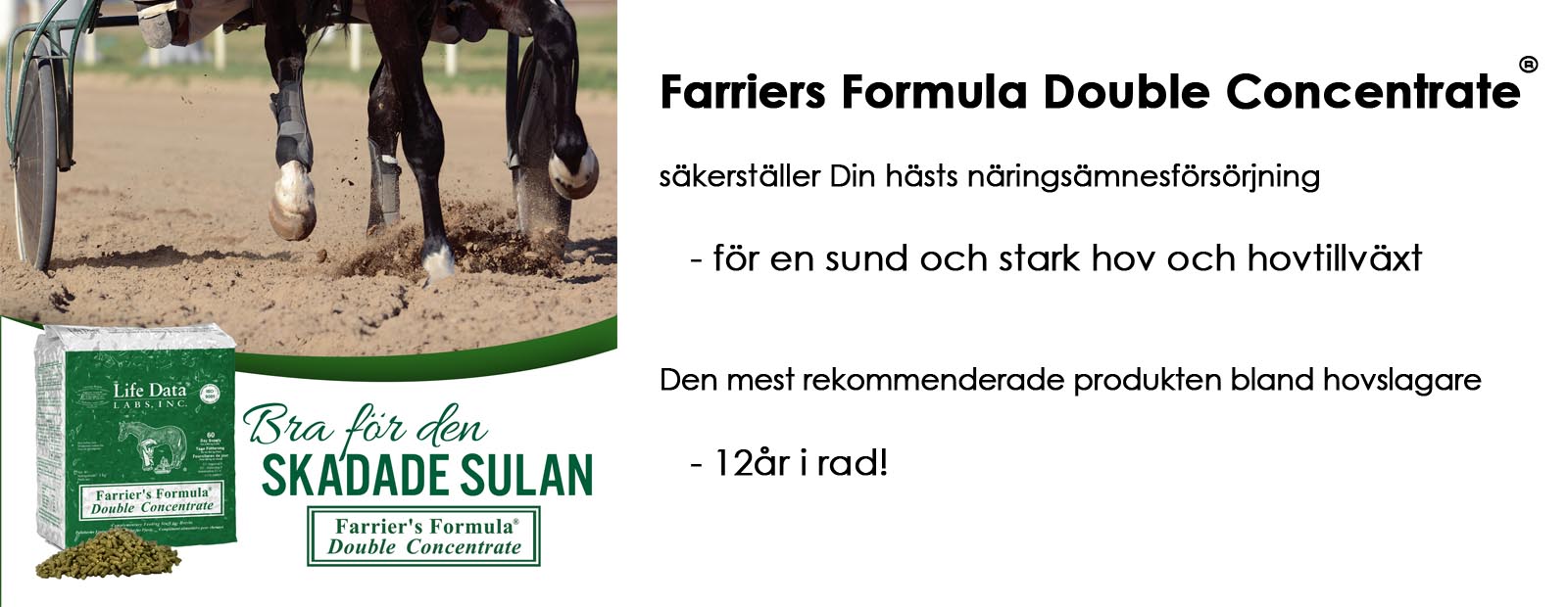 Farriers Formula Double Concentrate® säkerställer din hästs näringsämnesförsörjning för att kunna bilda bindvävnadsprotein - vilket är nödvändigt för en sund och stark hov och hovtillväxt. Skyddar mot de hovproblem som kan uppstå på grund av brist på näringsämnen. Bidrar med den näring som krävs för att hästen skall kunna bygga stark struktur och bindvävsprotein (senor, ligament, skelett, leder) och skapa bättre utväxt och kvalitet hos friska hovar. Skyddar och återuppbygger dessutom hud som blivit skadad av exempelvis insekter.