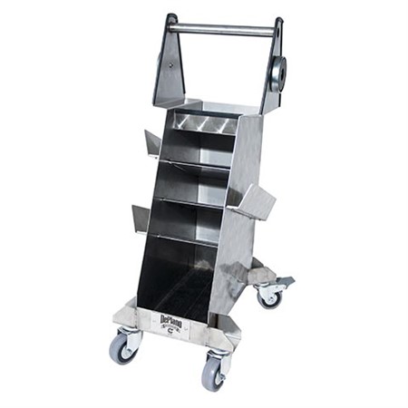 Aluminium med bärhandtag. Slimmad modell gör den mycket enkel och behändig. Med 4st sluttande verktygsfack samt en övre plan hylla, alla med skyddande svarta gummiräfflingar.