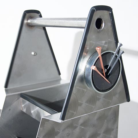 Aluminium med bärhandtag. Slimmad modell gör den mycket enkel och behändig. Med 4st sluttande verktygsfack samt en övre plan hylla, alla med skyddande svarta gummiräfflingar.